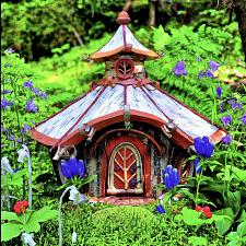 Fairy Houses: Golden Cottage in Alpine Garden - Large Piece