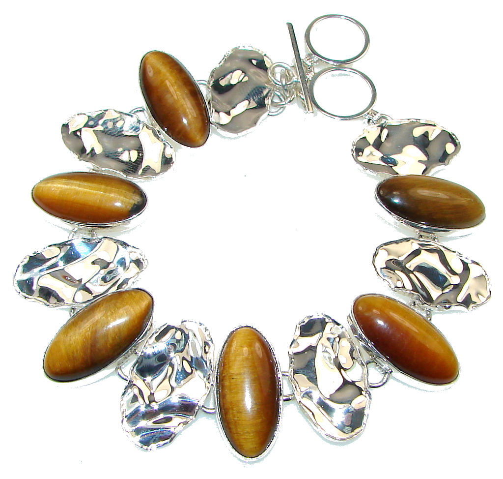 Natural Beauty!! Tigers Eye Covered Back Sterling Silver Bracelet