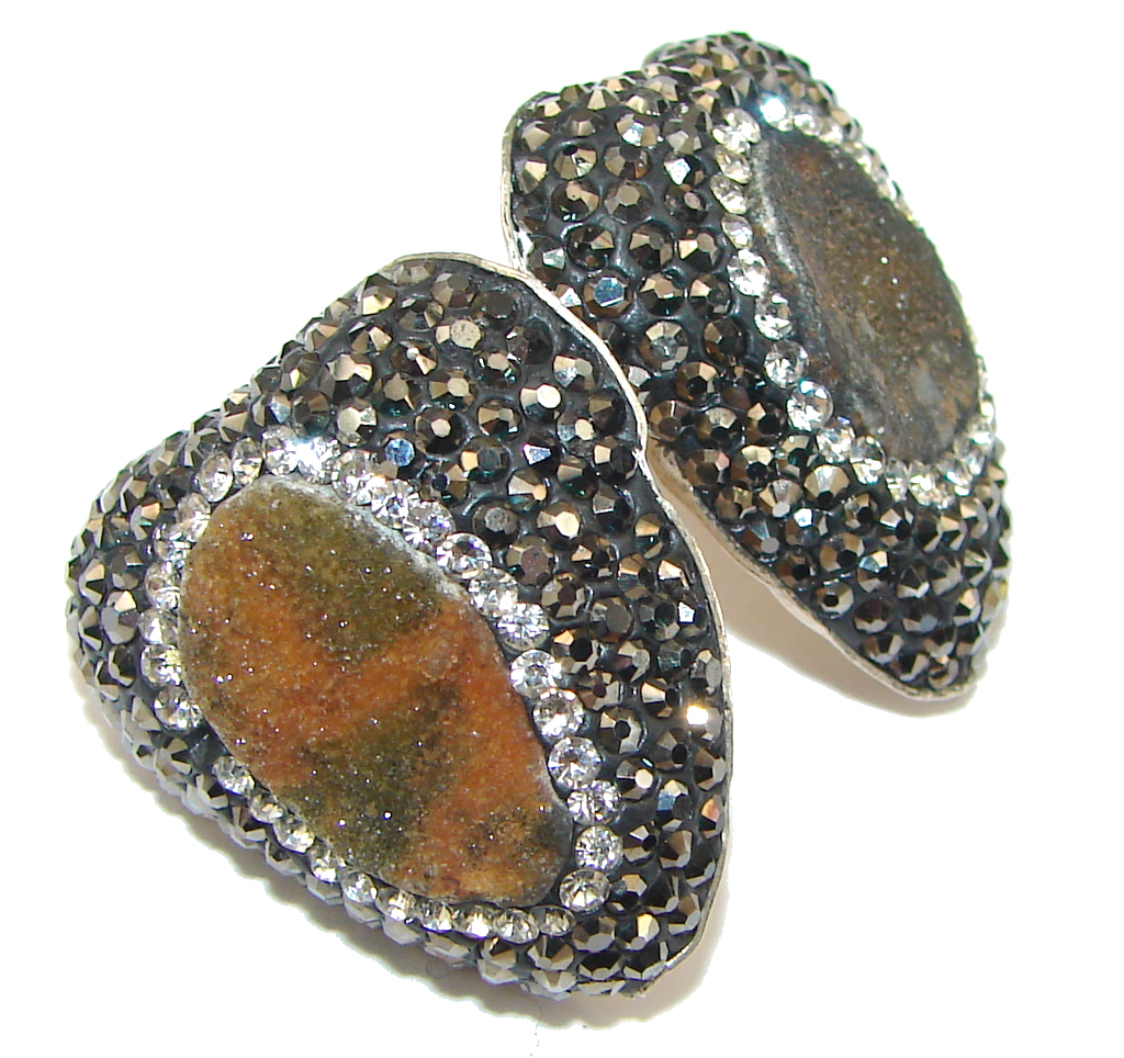 Turkish Style! Brown Druzy & White Topaz Sterling Silver Earrings