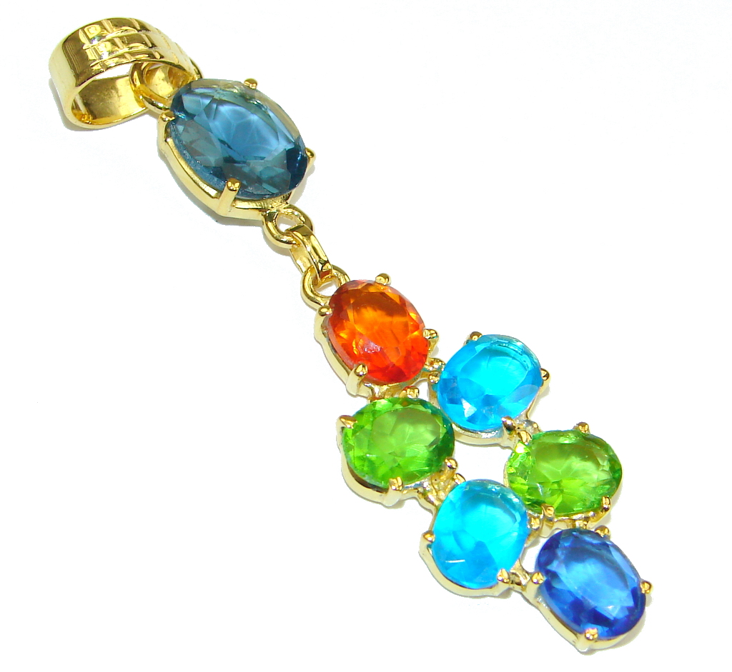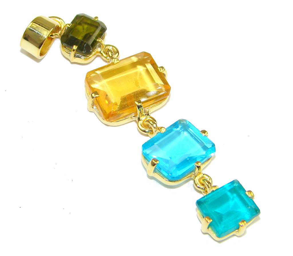 Luxury Multicolor Quartz, 18K Gold Plated Sterling Silver Pendant