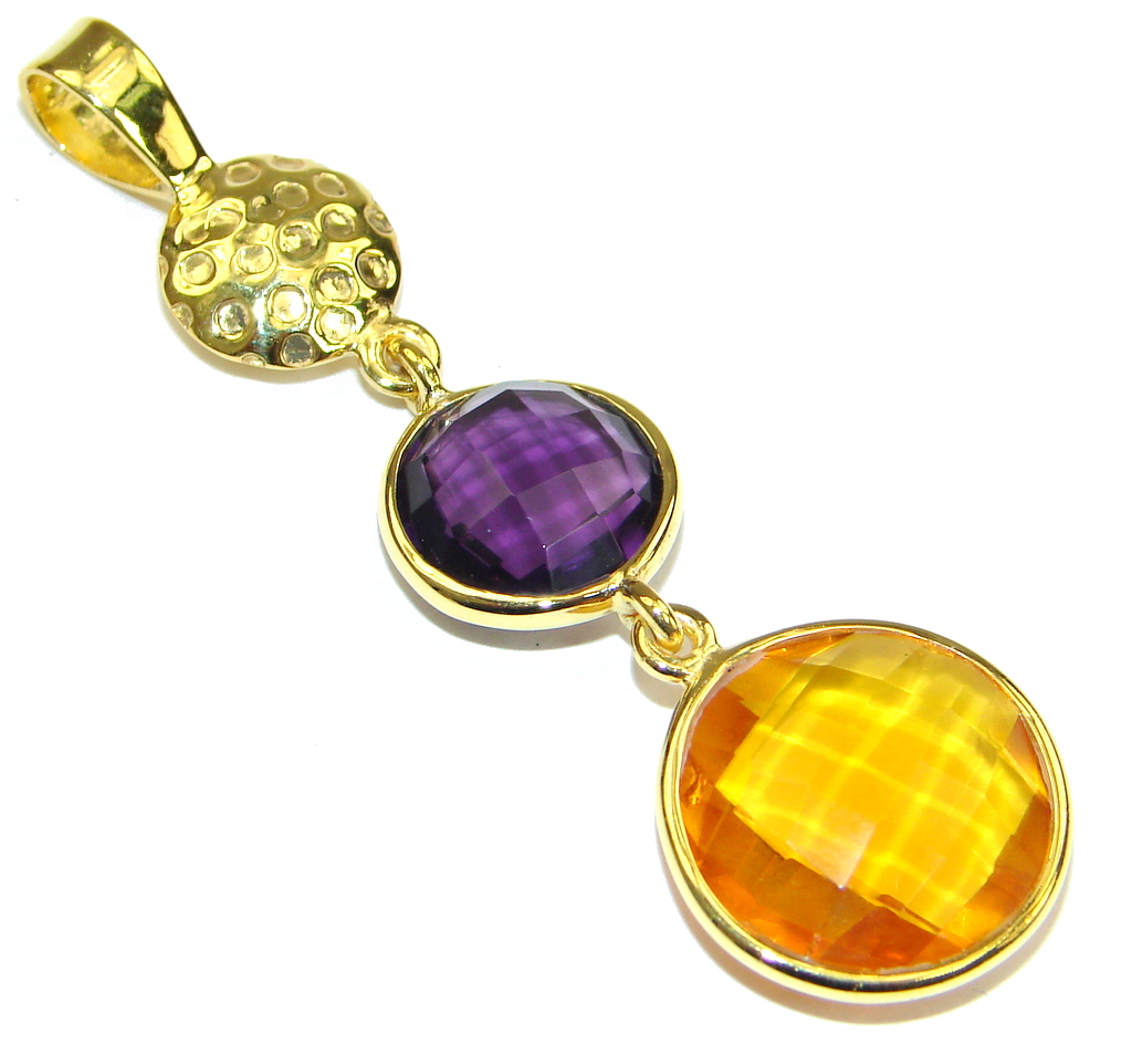 Great Multicolor Quartz 18K Gold Plated Sterling Silver Pendant