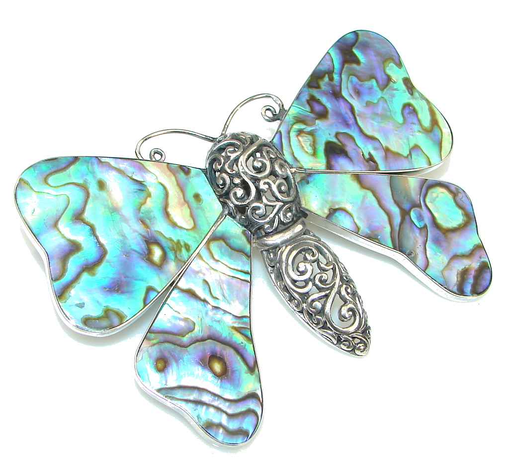 Big! Serene Sea! Rainbow Abalone Sterling Silver Pendant / Brooch