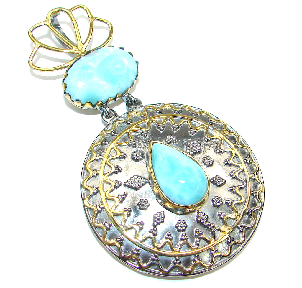Big! Gorgeous Blue Larimar, Gold Plated, Rhodium Plated Sterling Silver Pendant