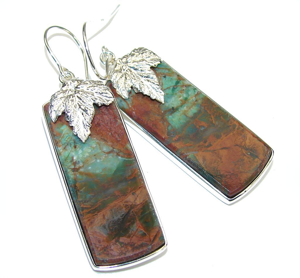 Large! Garden Love! Created Green Apatite, Imperial Jasper Sterling Silver Bracelet