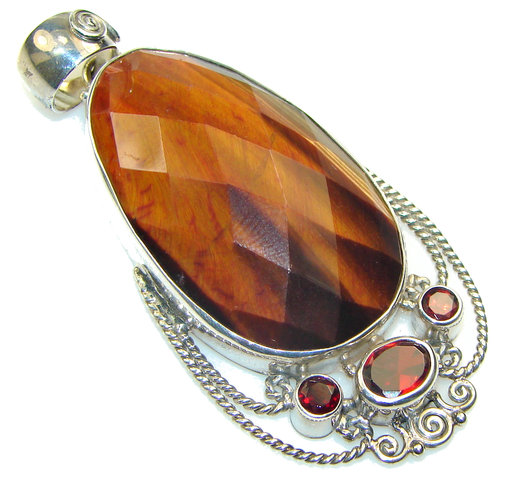 Amazing!! Brown Tigers Eye Sterling Silver Pendant