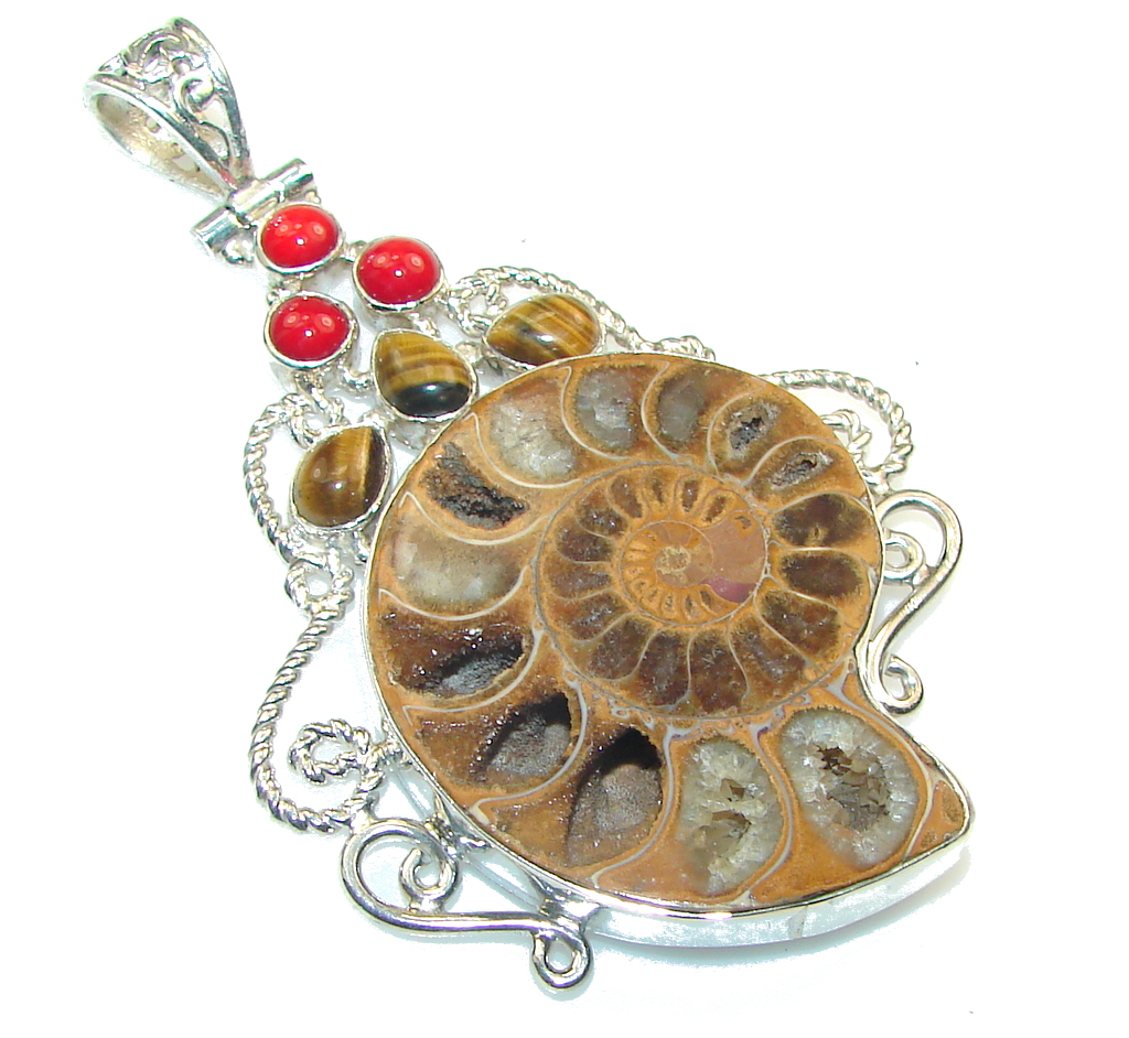 Big! Classy Ammonite Fossil Sterling Silver Pendant