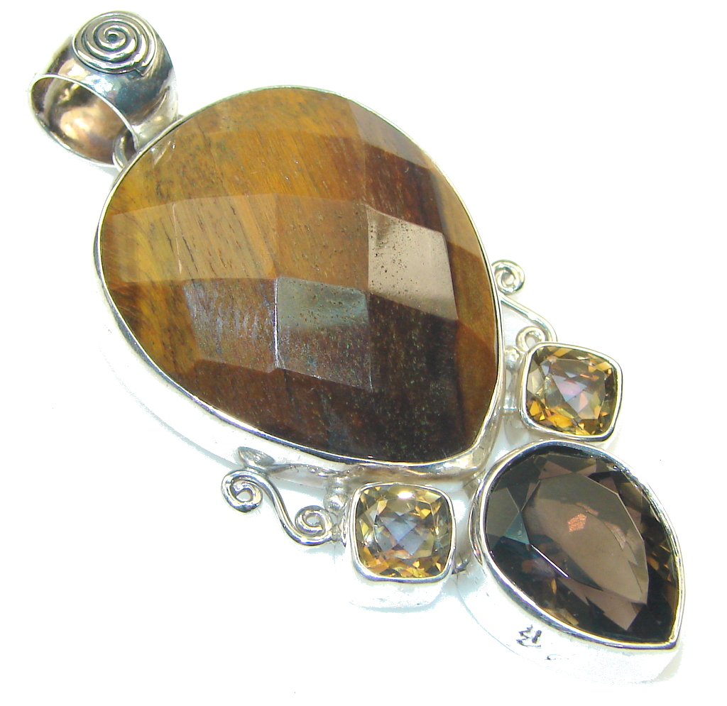 Fantastic! Brown Tigers Eye Sterling Silver Pendant