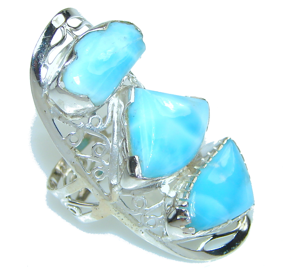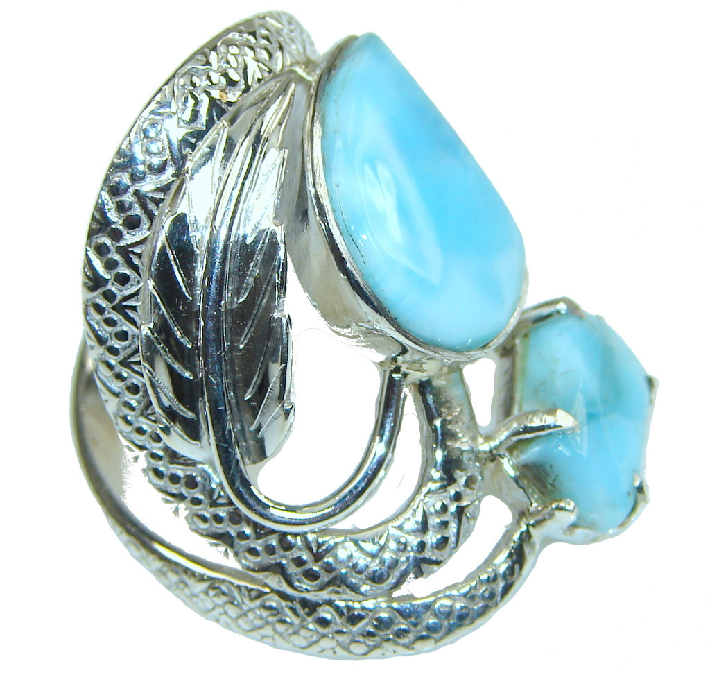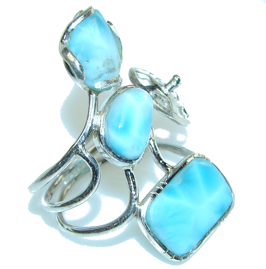 Large! New Exclusive Style! Light Blue Larimar Sterling Silver Ring s. 11 1/4