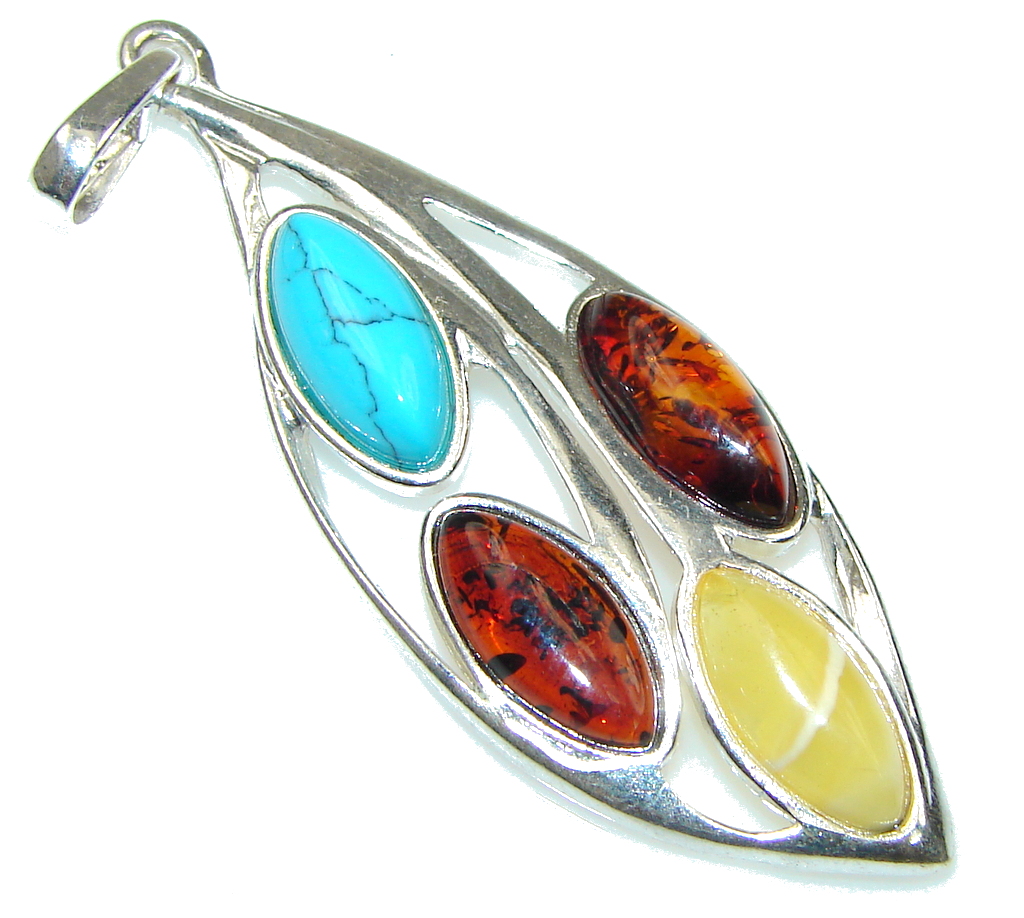 Tropical! Baltic Polish Amber & Turquoise Sterling Silver Pendant