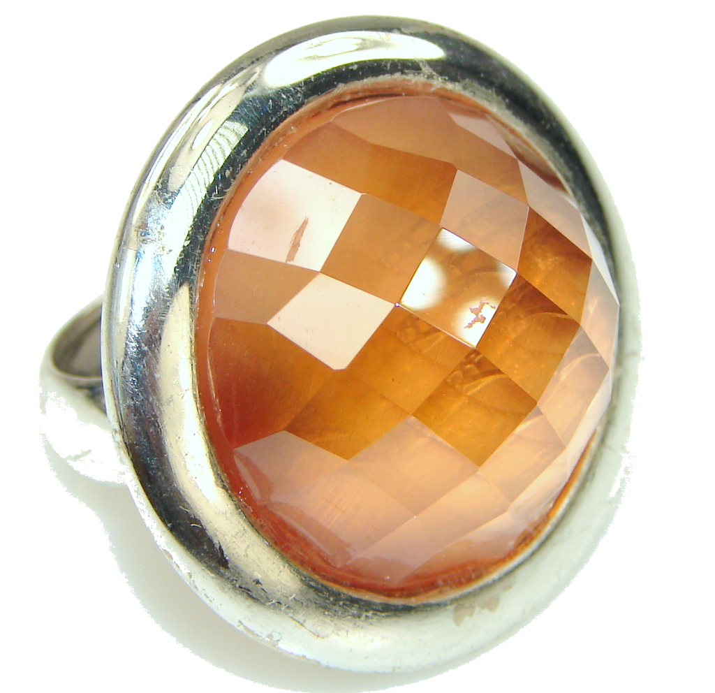 Large! Simple Design! Golden Quartz Sterling Silver Ring s. 7 1/2