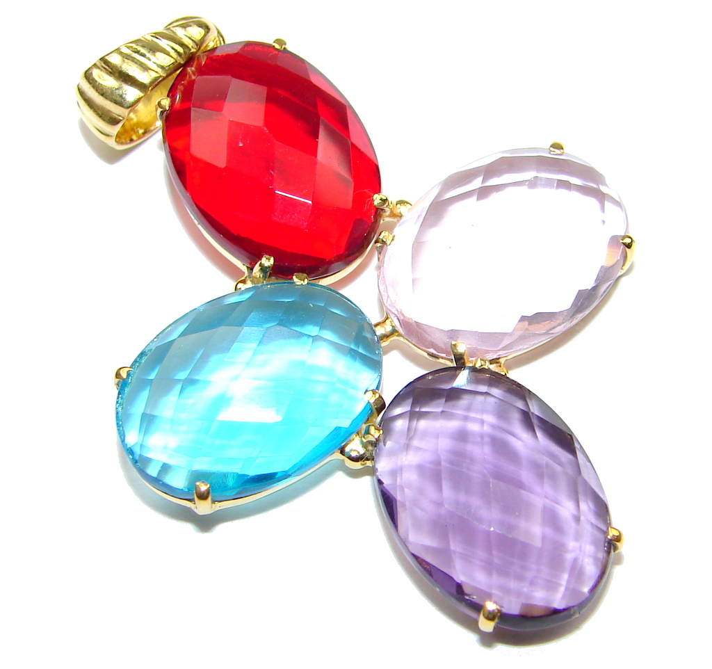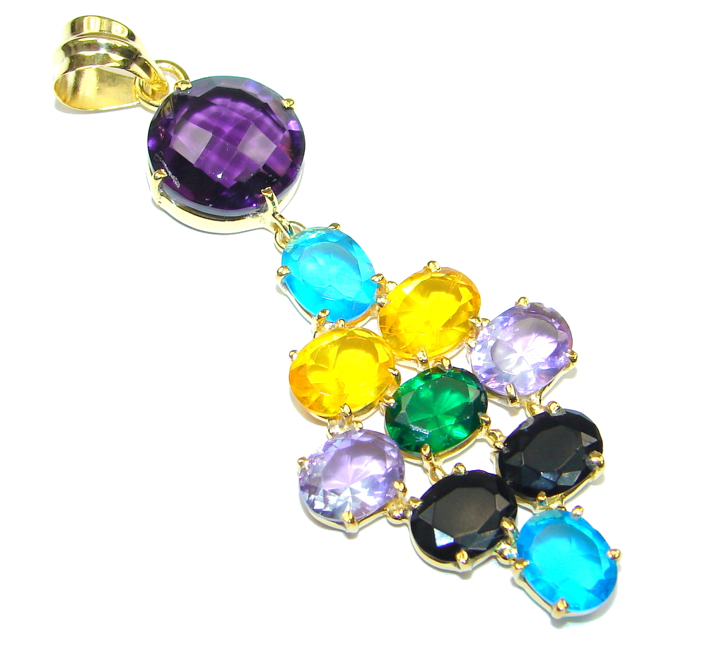 Total Happiness! Multicolor Quartz, 18K Gold Plated Sterling Silver Pendant