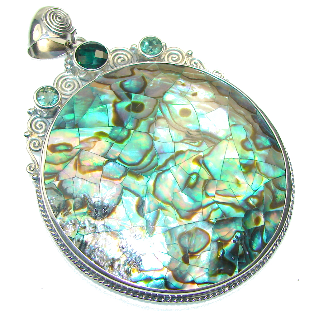 Big! Awesome Rainbow Abalone Sterling Silver Pendant