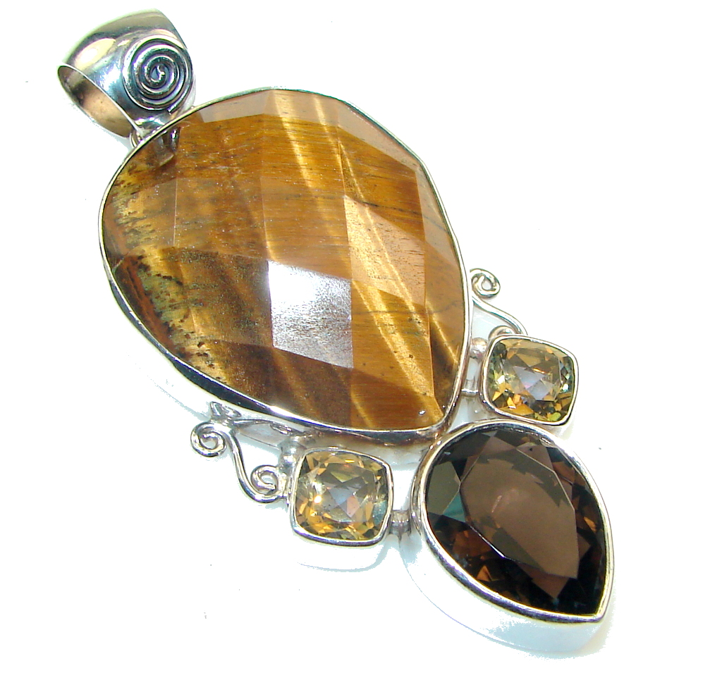 Fantastic! Brown Tigers Eye Sterling Silver Pendant
