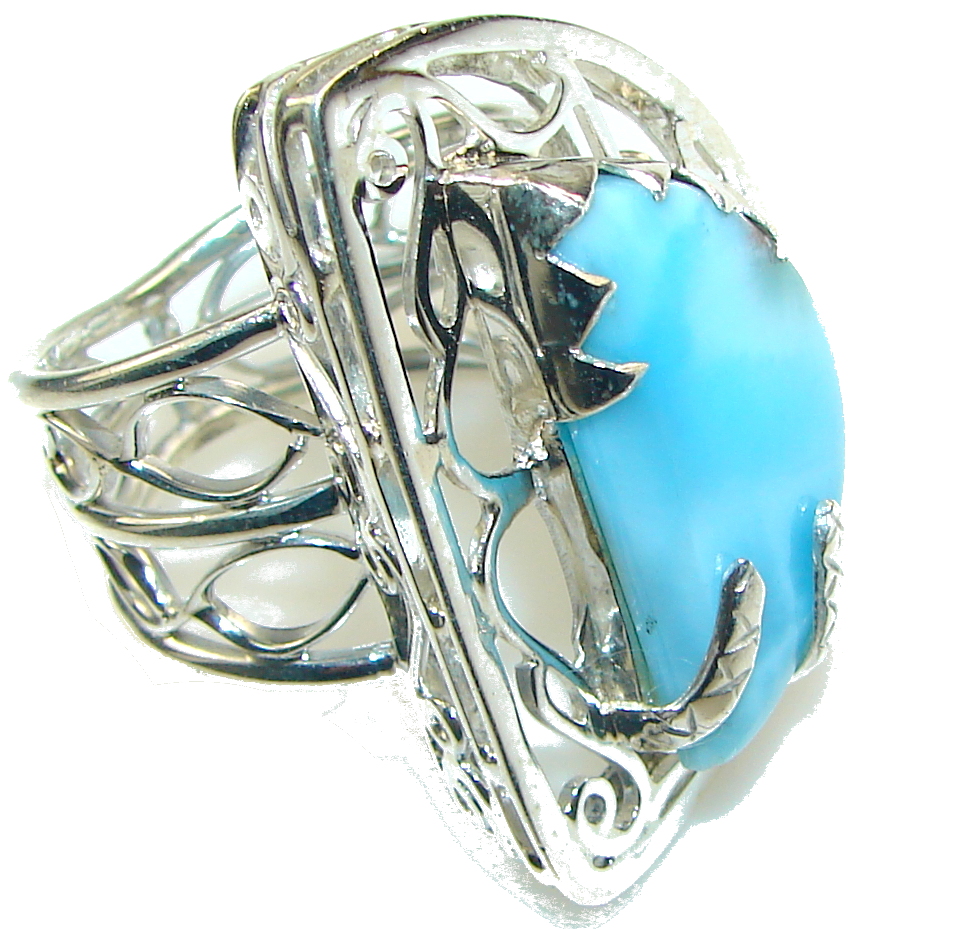 Stunning Design! Light Blue Larimar Sterling Silver Ring s. 10