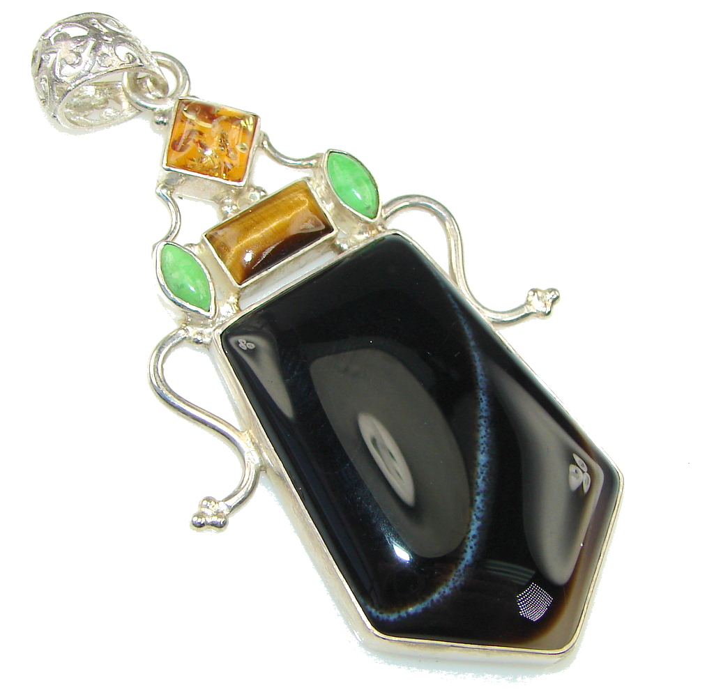 Large! Bali Secret! AAA Montana Agate Sterling Silver Pendant