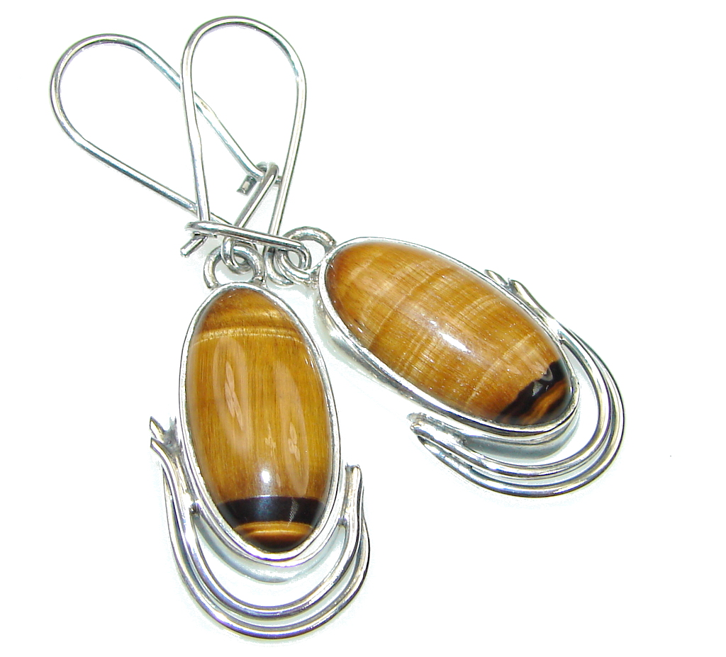 Safari Charm! Golden Tigers Eye Sterling Silver Earrings