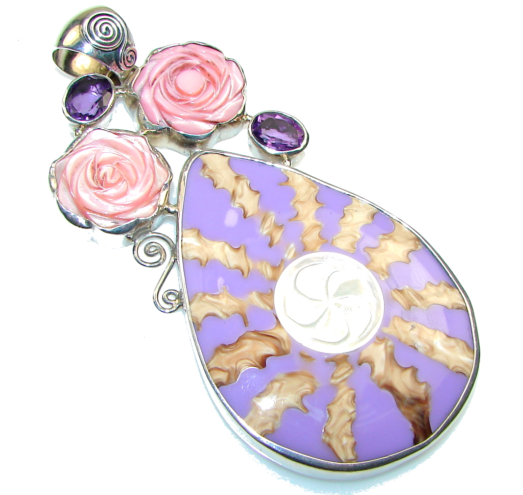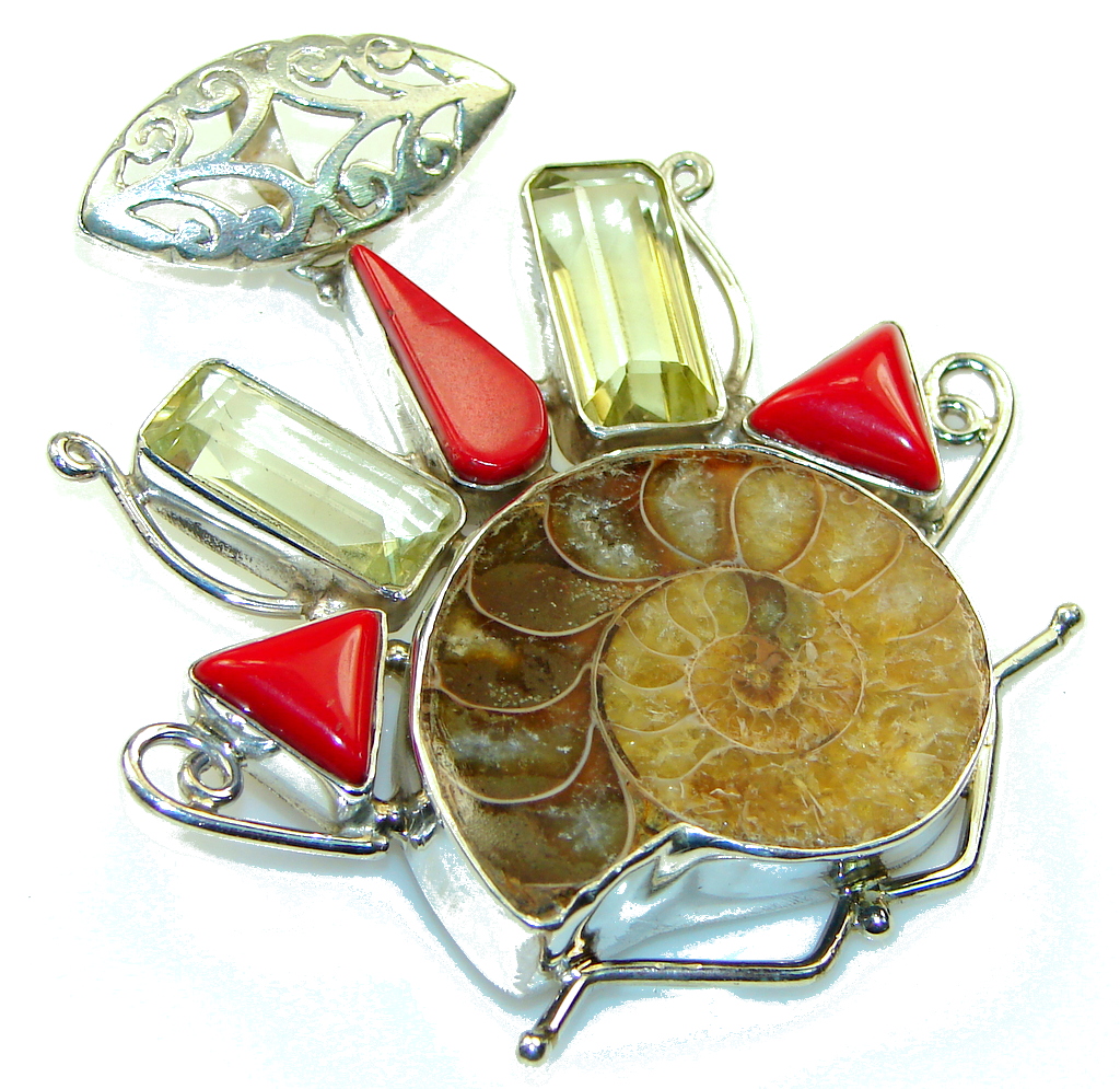 Big! Fashion Ammonite Fossil Sterling Silver Pendant