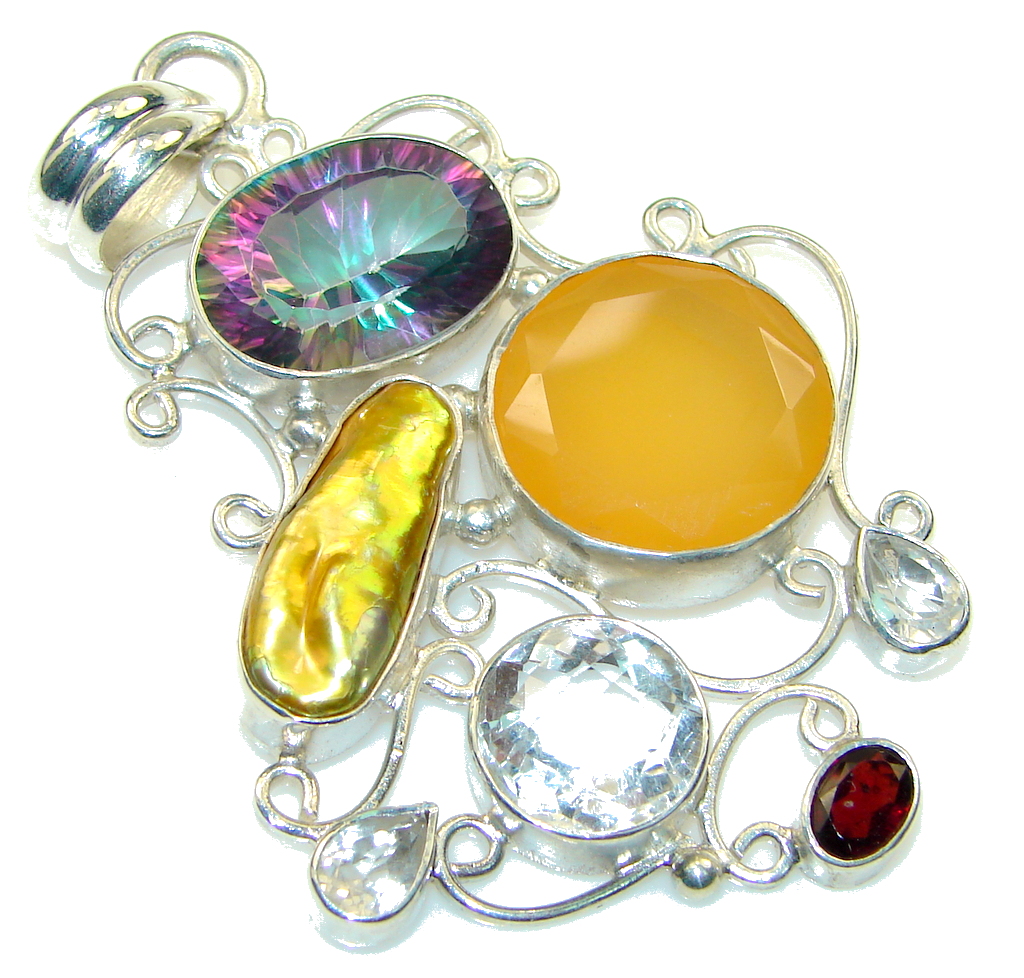 Aura Of Beauty!! Multistone Sterling Silver Pendant