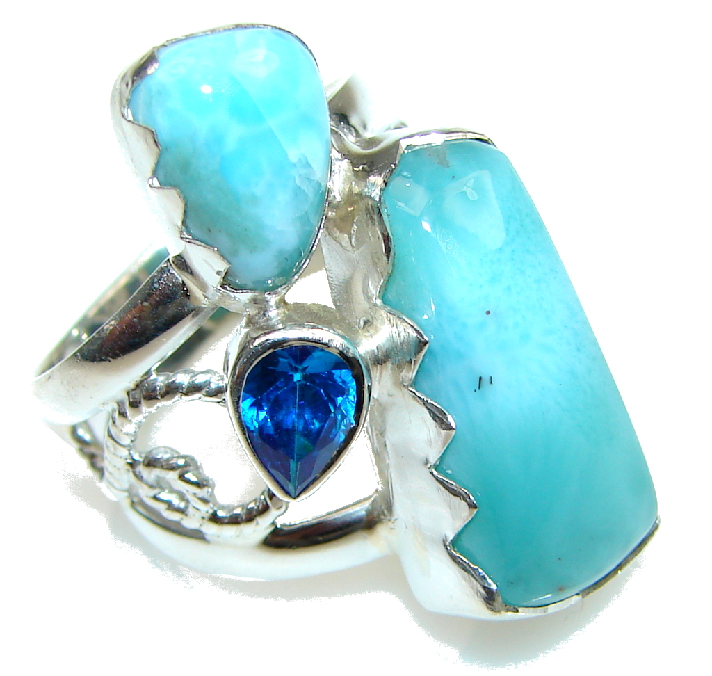 Pale Beauty! AAA Blue Larimar & London Blue Topaz Sterling Silver Ring s. 7 1/2
