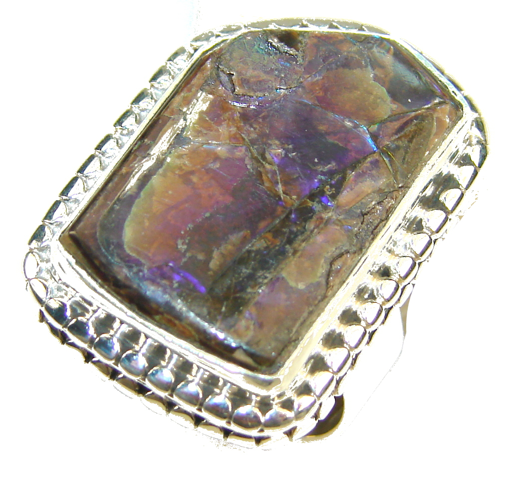 Fabulous Ammolite Sterling Silver ring s. 8