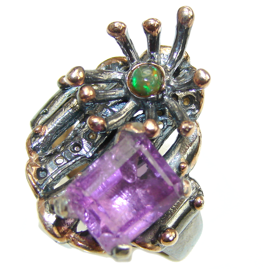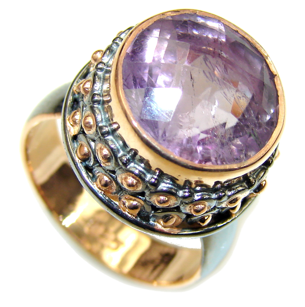 Lovely AAA Purple Amethyst, Rose Gold Plated, Rhodium Plated Sterling Silver ring s. 7