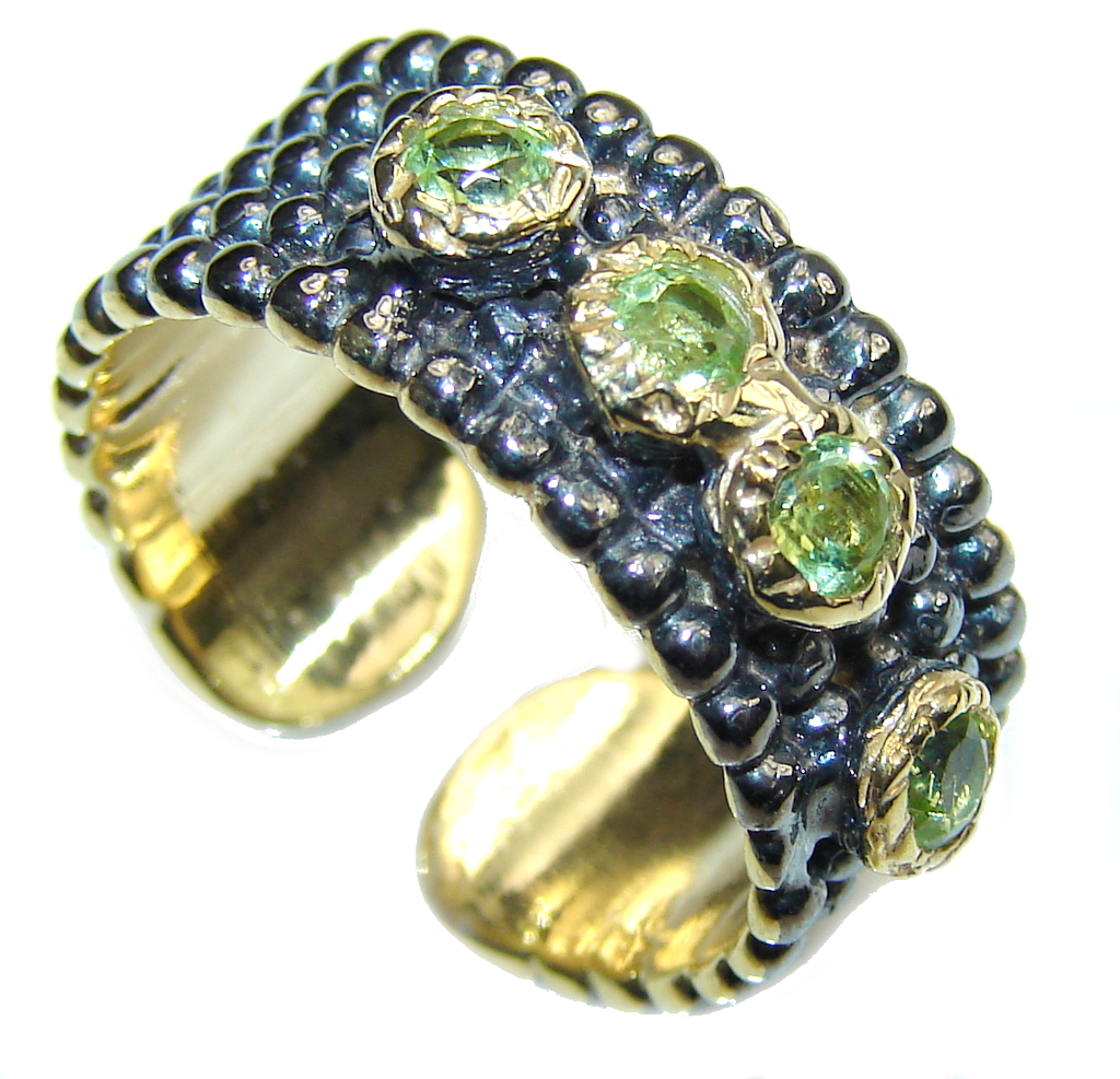 Natural Green Peridot, Gold Plated, Rhodium Plated Sterling Silver ring s. 7