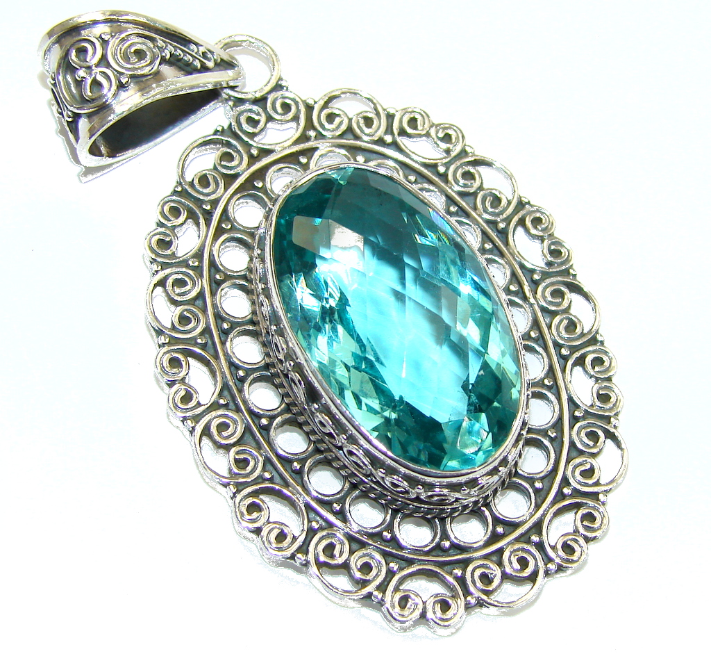 Big! Bali Secret! AAA Blue Labradorite & Swiss Blue Topaz Sterling Silver Pendant