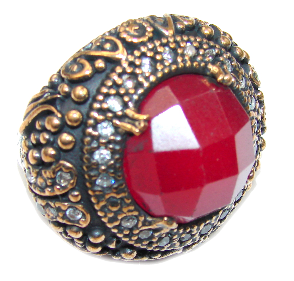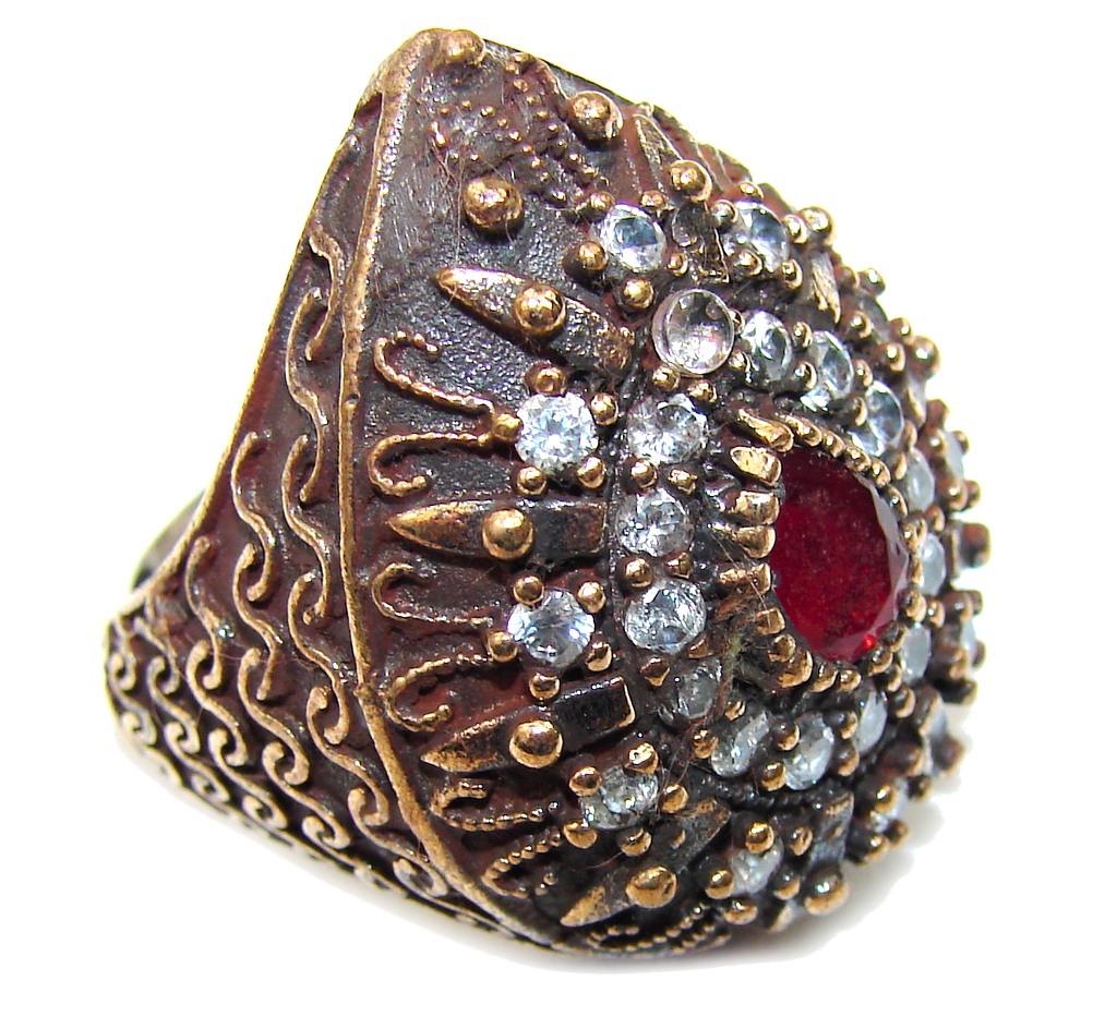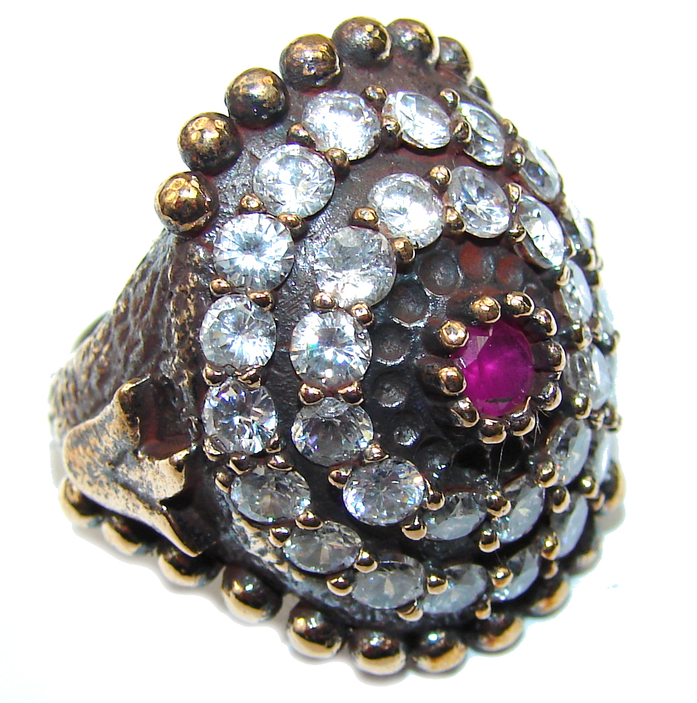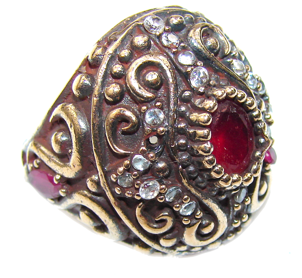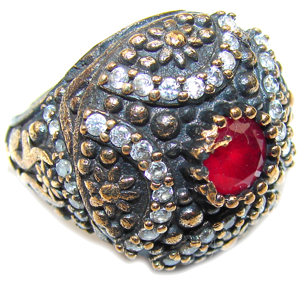 Victorian Style! Red Ruby & White Topaz Sterling Silver Ring s. 7 1/4