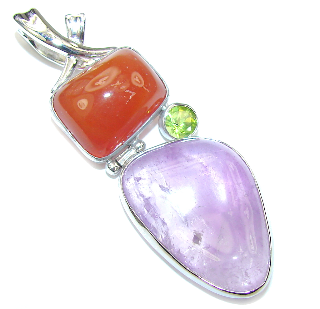 Natural Beauty! Purple Amethyst & Carnelian Sterling Silver Pendant