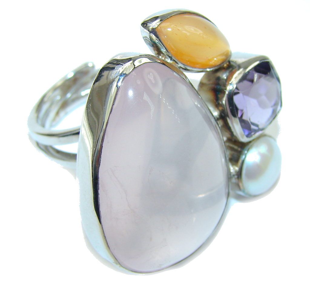 Big! Passion Rose Pink Quartz Sterling Silver Ring s. 7 - adjustable