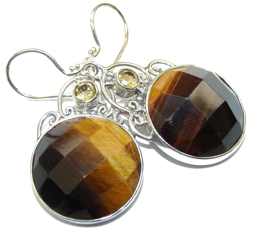 Delicate Brown Tigers Eye & Citrine Sterling Silver Earrings