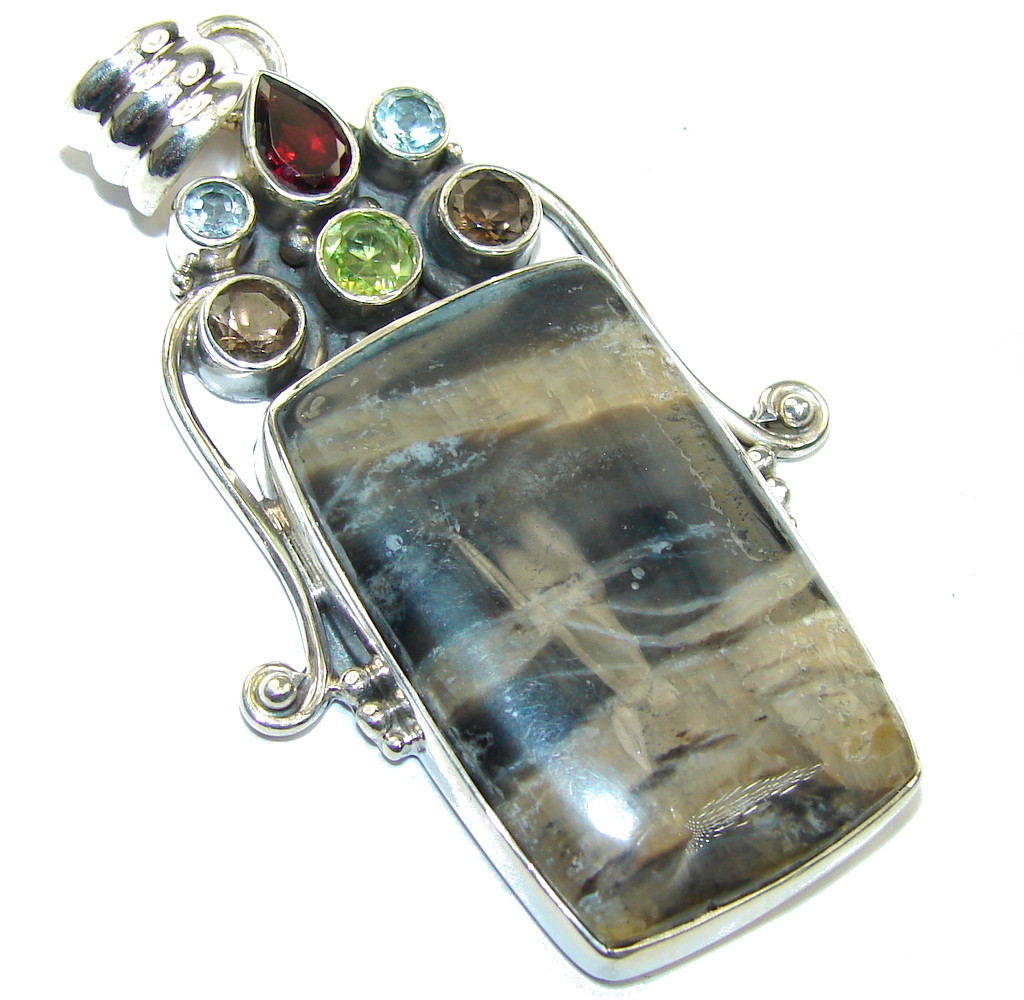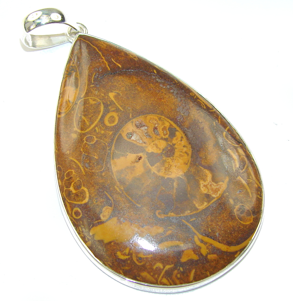 Big! Secret Brown Crinoid Fossil Sterling Silver Pendant
