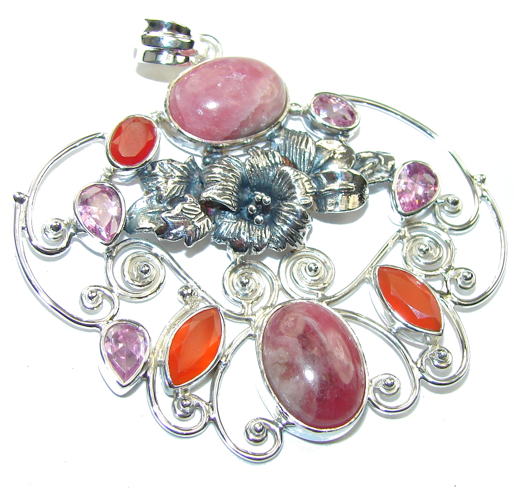 Flower Design! Pink Rhodochrosite Sterling Silver Pendant