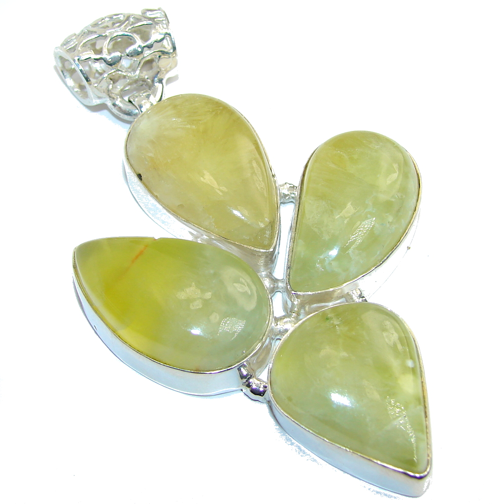 Open your mind Genuine AAA Prehnite Sterling Silver Pendant