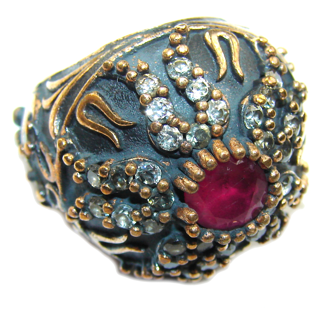 Victorian Style! Pink Ruby & White Topaz Sterling Silver Ring s. 6