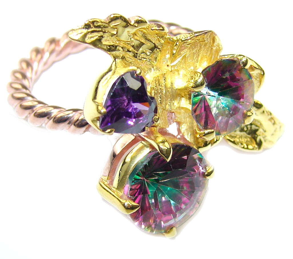 Stunning AAA Magic Topaz, Rose & Gold Plated Sterling Silver Ring s. 8 1/4