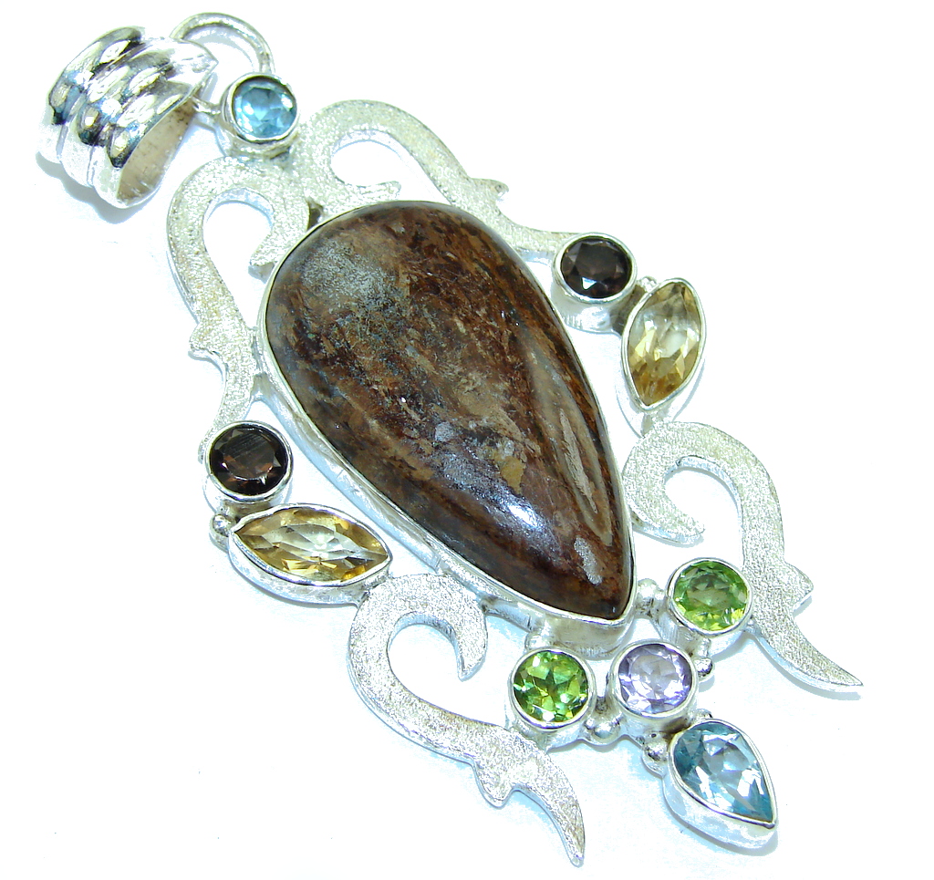 Marvelous Long Golden Pietersite Sterling Silver pendant
