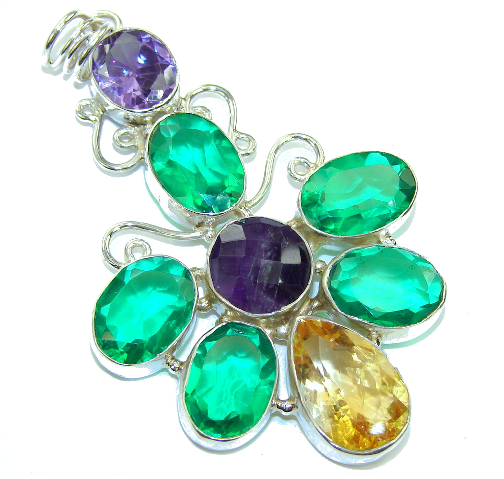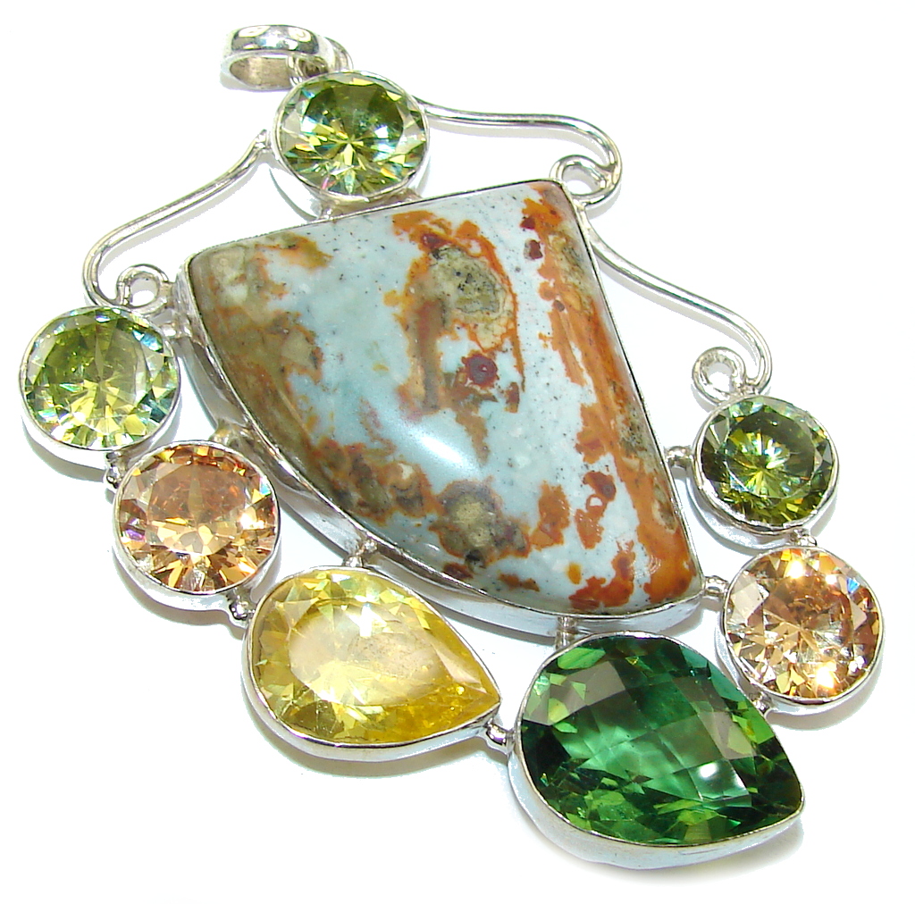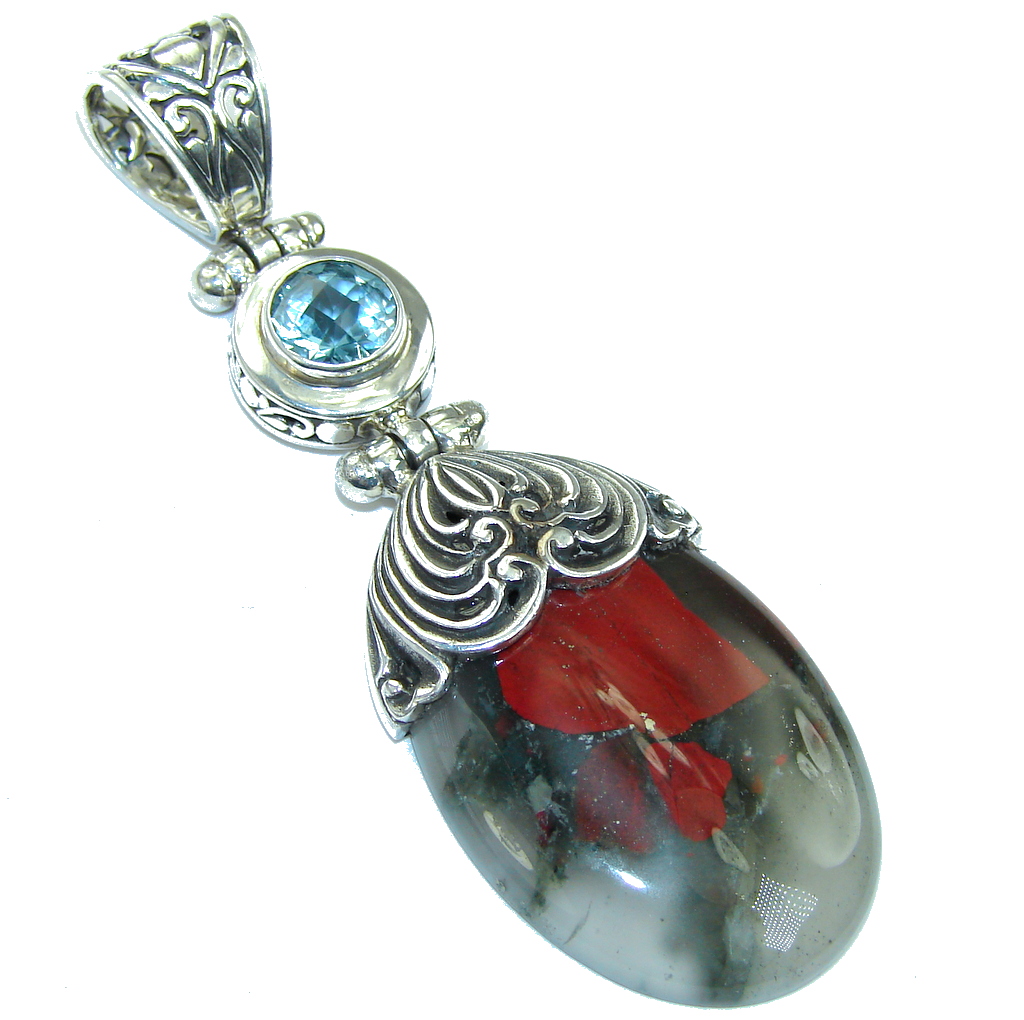 Handcrafted Bali Made Moss Agate & Blue Topaz Sterling Silver Pendant