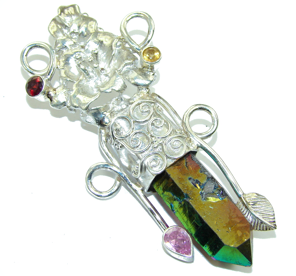 Sweet Rainbow Titanum Druzy Sterling Silver pendant