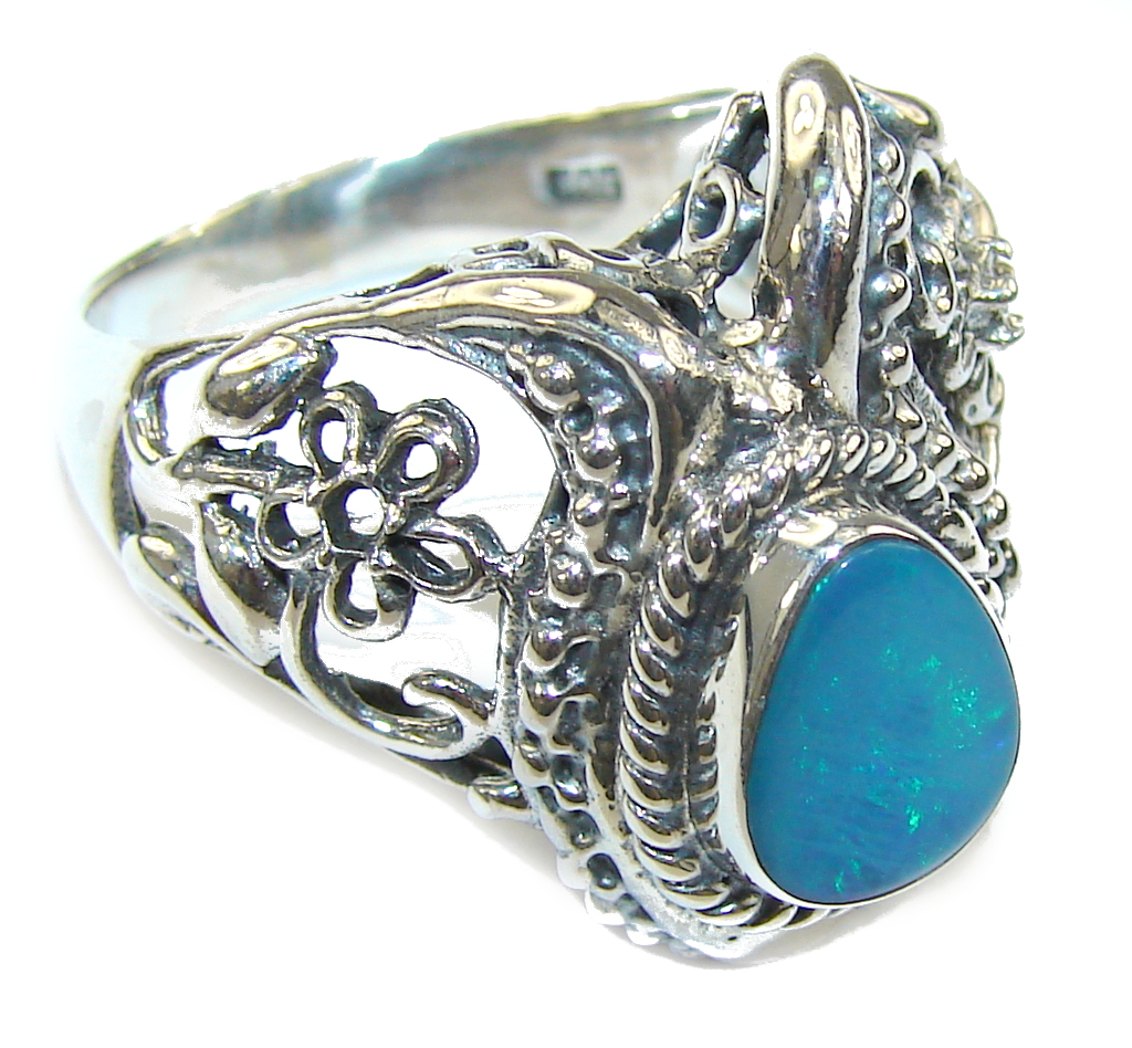 Delicate Japanese Blue Fire Opal Sterling Silver ring s. 8 1/2