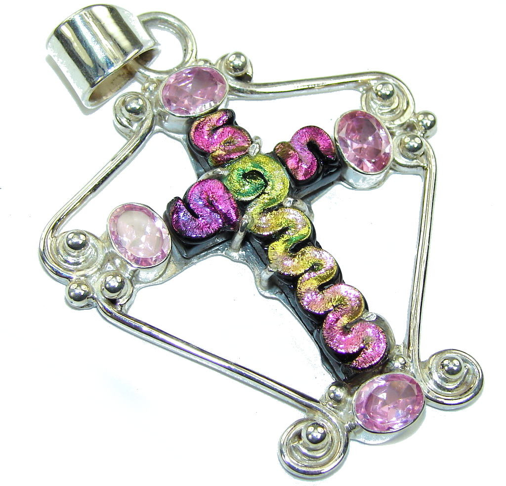 Fashion Style! Mexican Dichroid Glass Sterling Silver Pendant / Cross