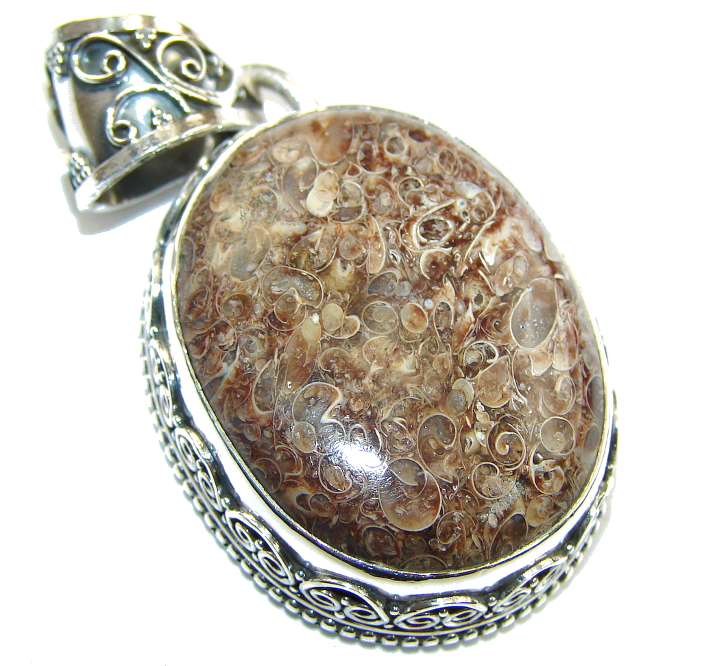 Simple Brown Crinoid Fossil Sterling Silver Pendant