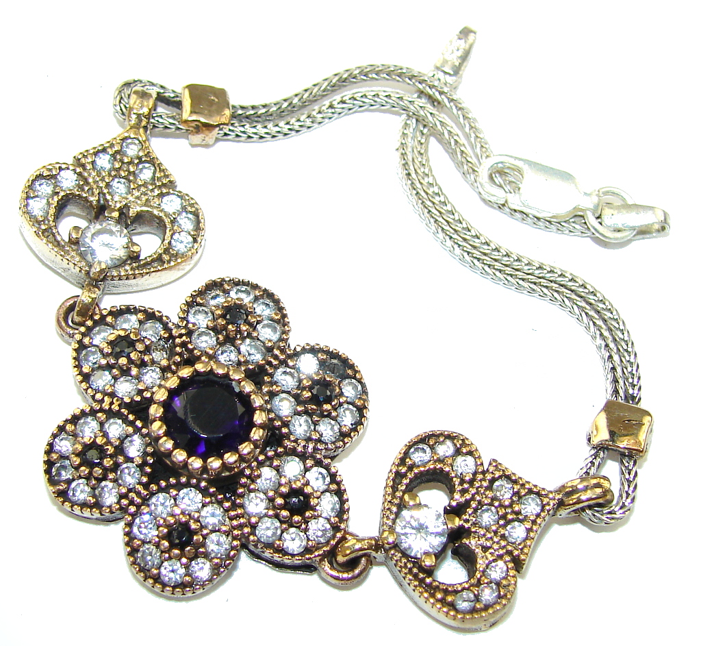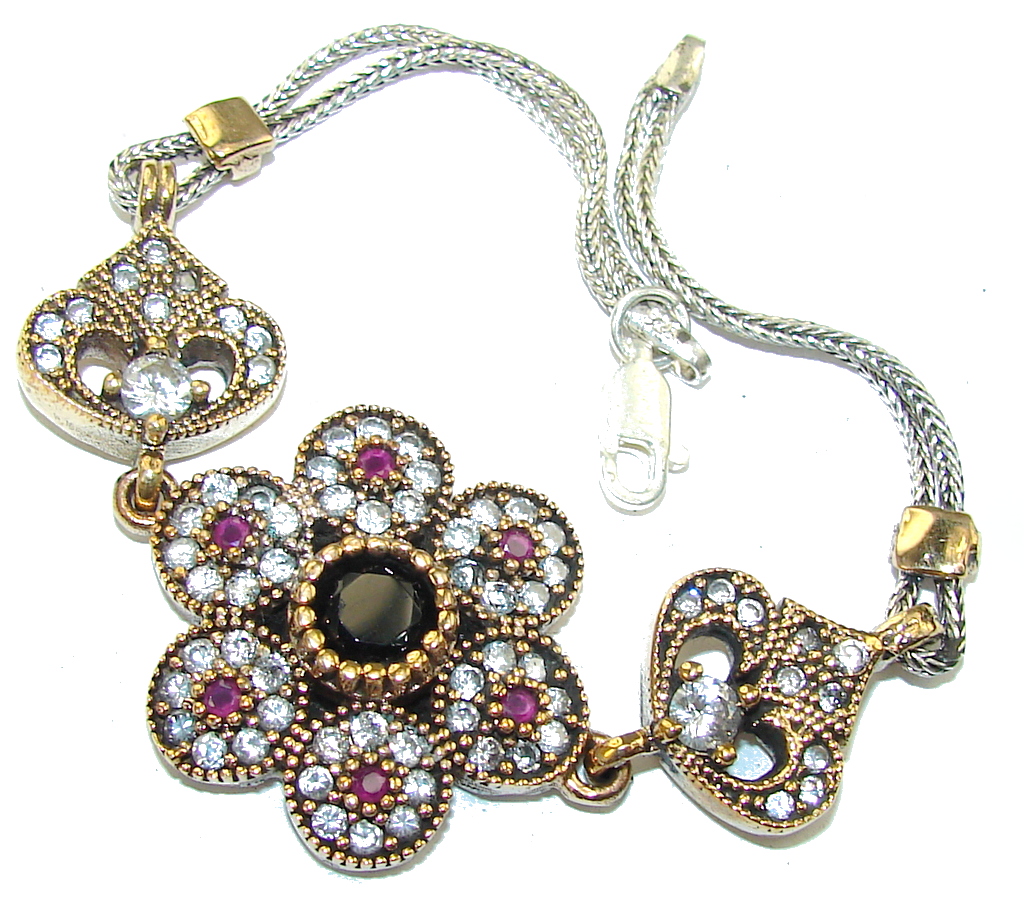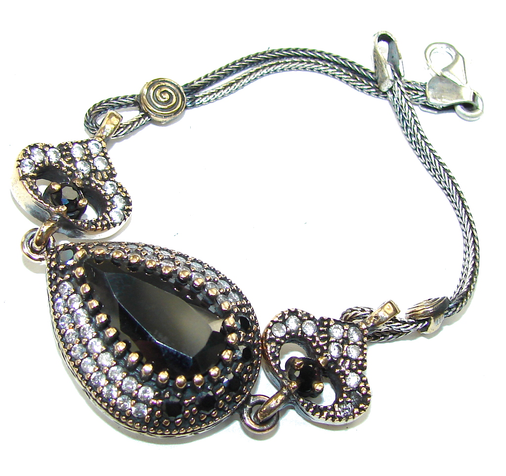 Victorian Style Black Spinel & White Topaz Sterling Silver Bracelet