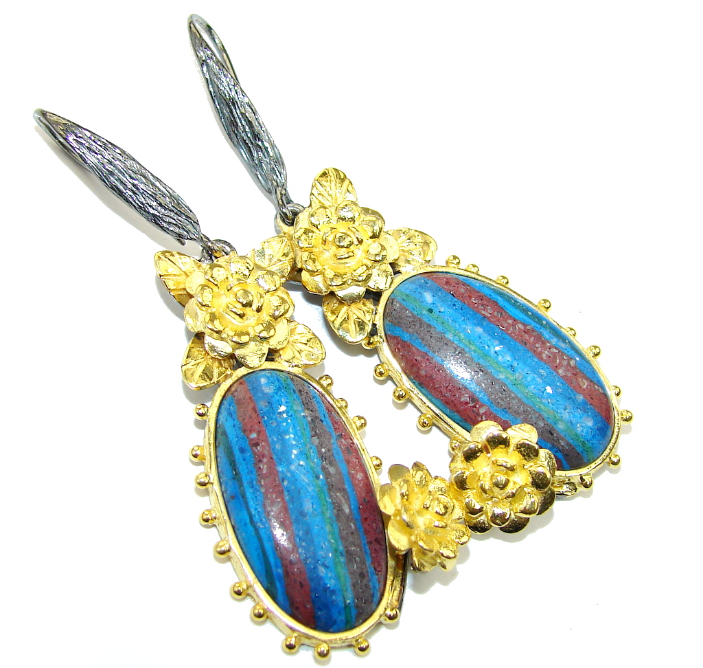 Natural Beauty! Rainbow Calsilica, Gold Plated, Rhodium Plated Sterling Silver earrings