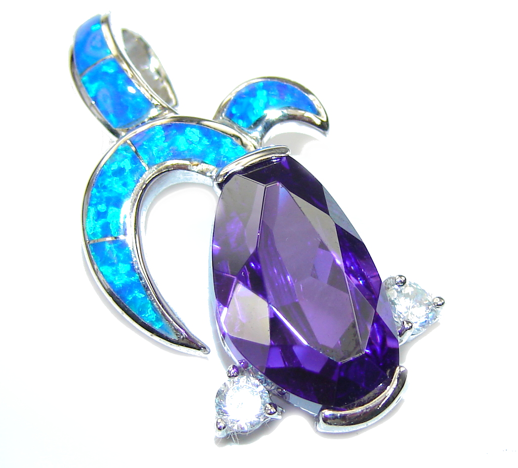 Amazing AAA Purple Cubic Ziconia Fire Opal Sterling Silver Pendant