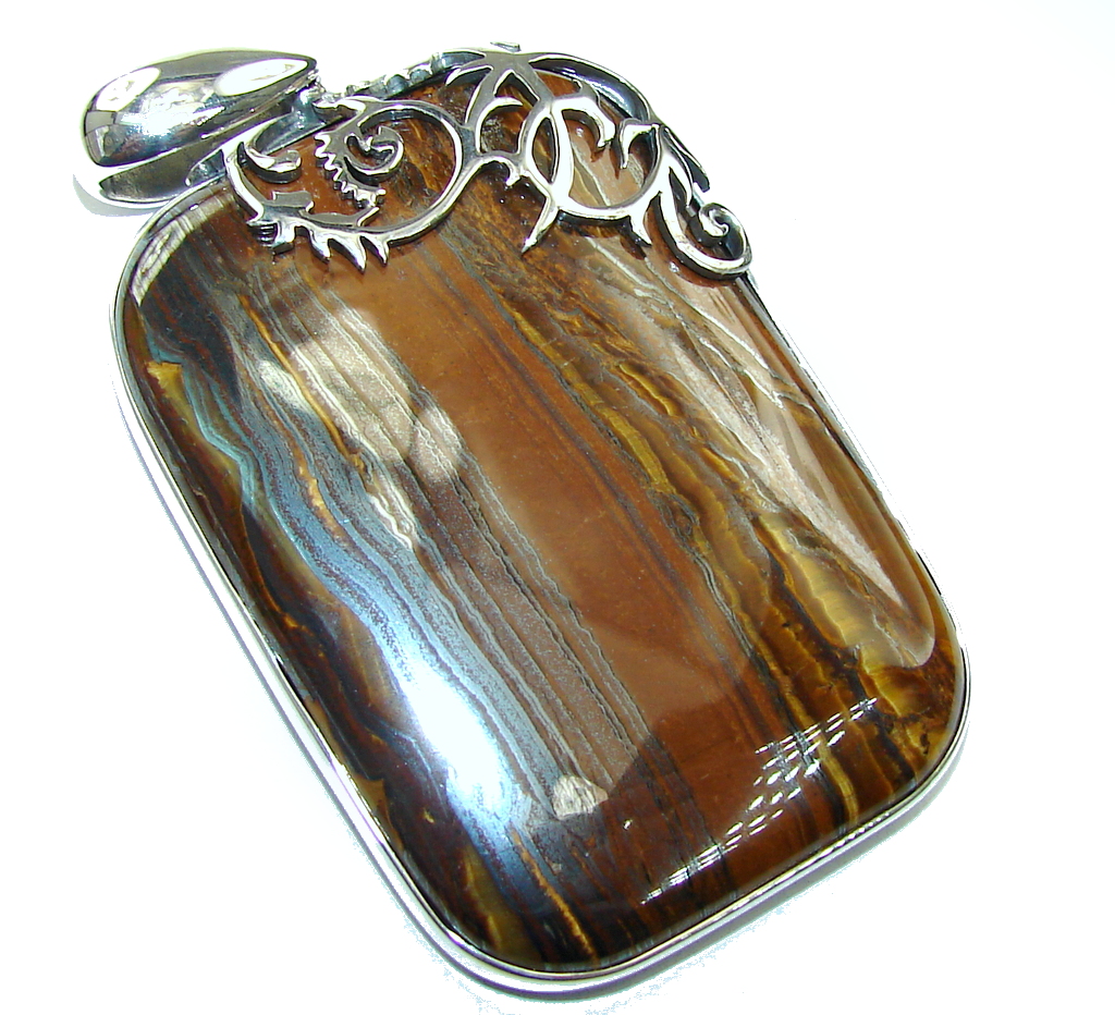 Beautiful AAA Brown Imperial Jasper Sterling Silver Pendant