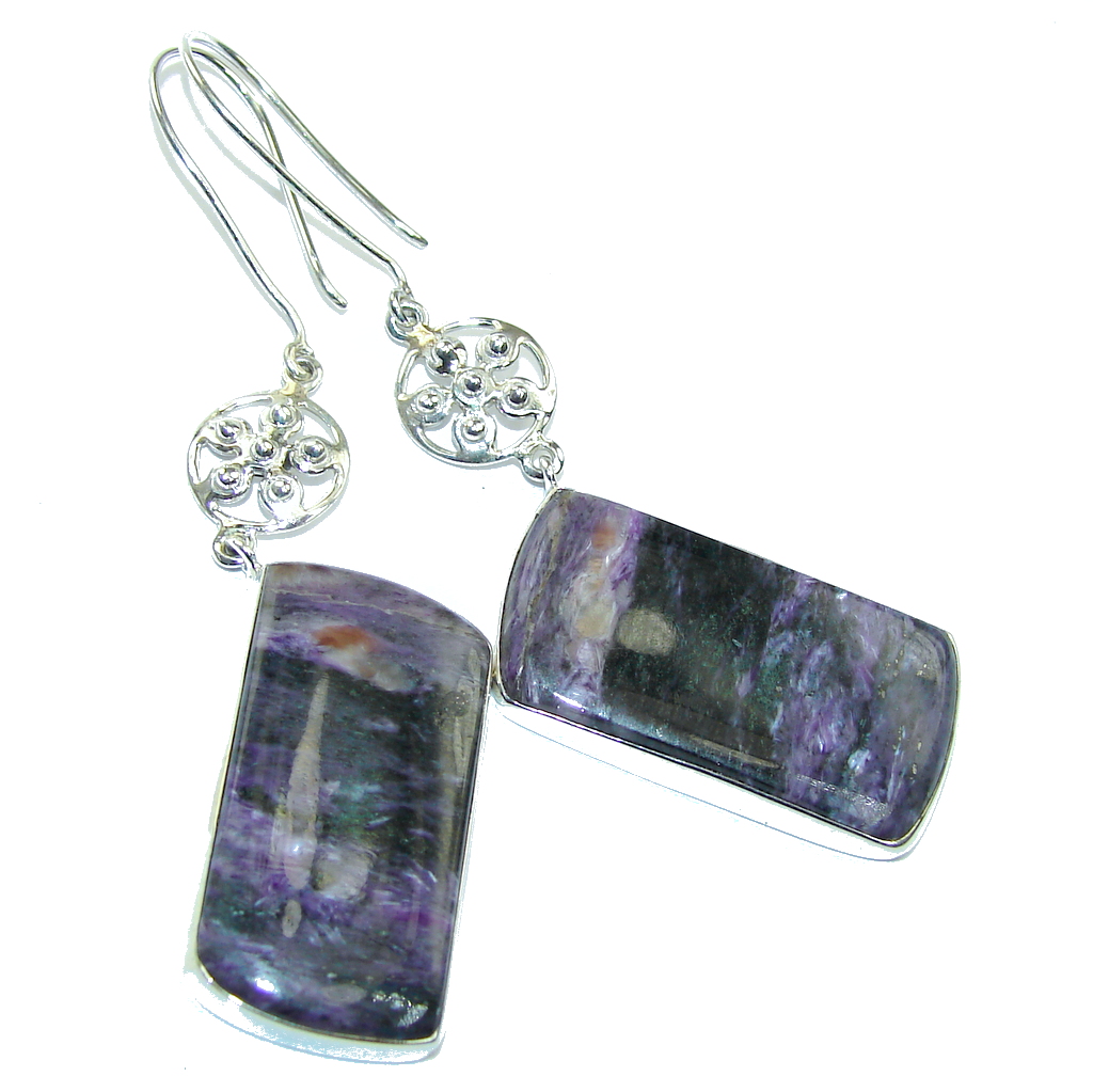 Fabulous Purple Charoite Sterling Silver earrings / Long