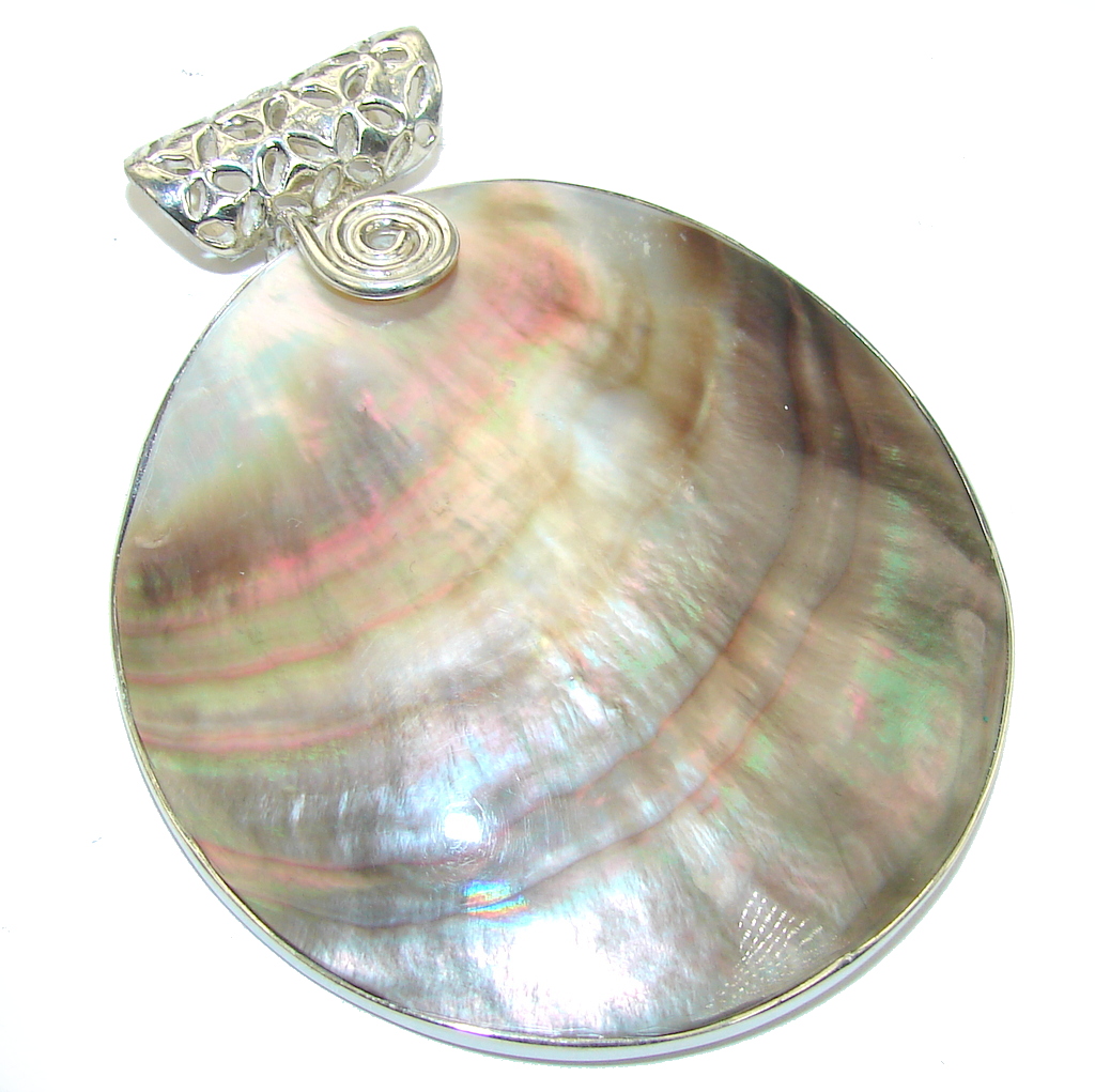 Big! Delicate Rainbow Abalone Sterling Silver Pendant