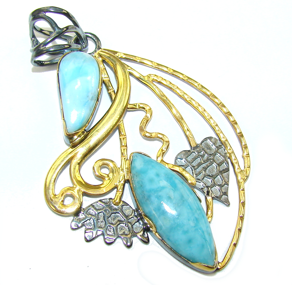 Exclusive AAA Blue Larimar, Gold Plated, Rhodium Plated Sterling Silver Pendant