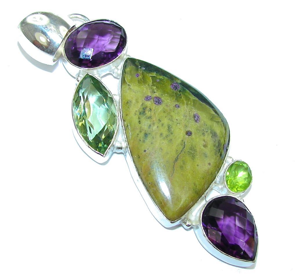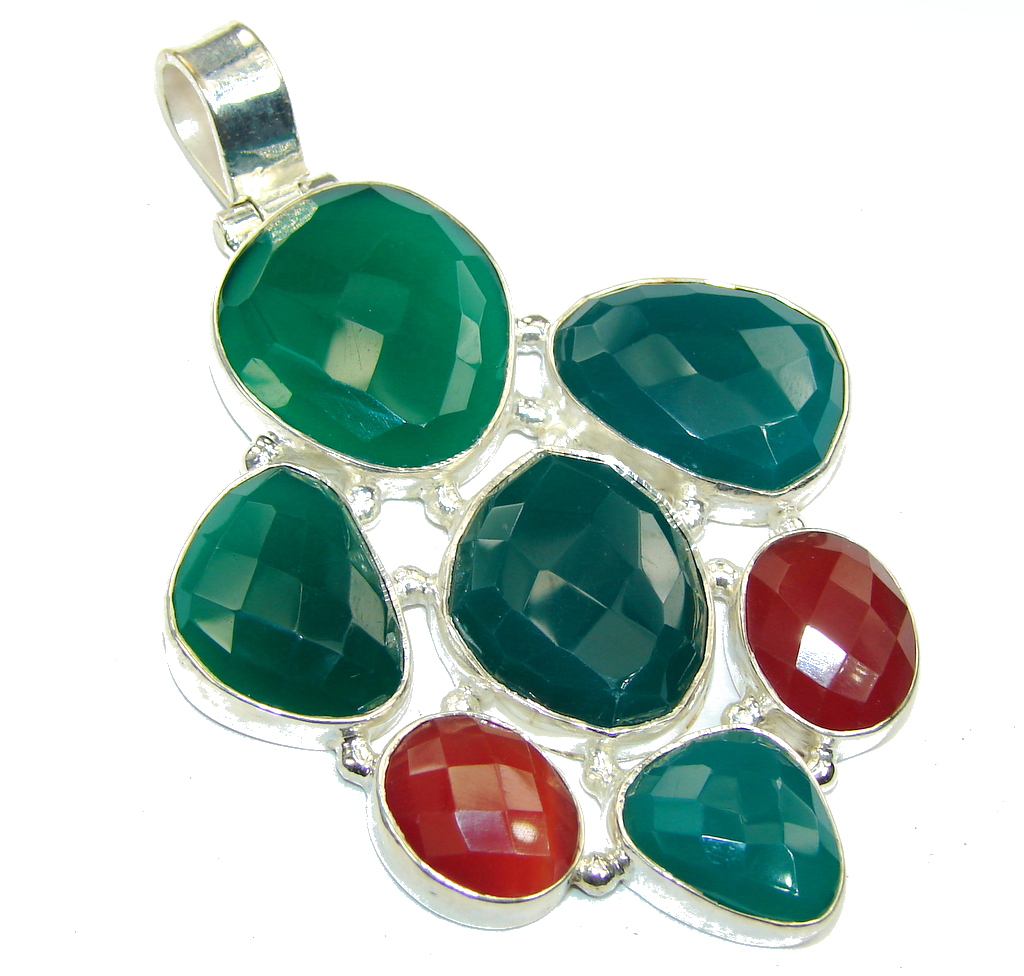 Large! Garden Beauty! Faceted AgateSterling Silver Pendant